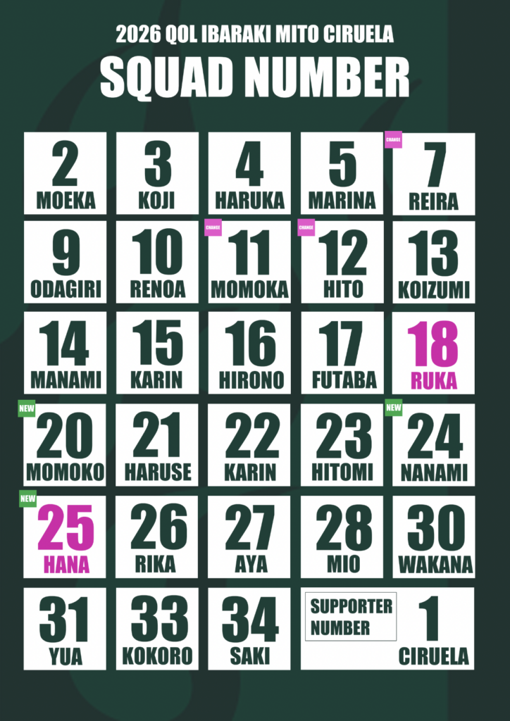 2026年2月19日 / 最終更新日時 : 2026年2月19日 mito-ciruela お知らせ 【お知らせ】2026シーズン選手背番号のご報告 日頃より水戸シルエラへのご支援・ご声援誠にありがとうございます。この度、2026シーズンの選手背番号をお知らせいたします。